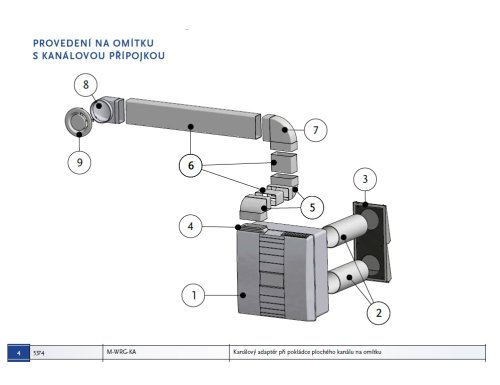 Kanálový adaptér M-WRG-KA pro připojení další místnosti pomocí plochého plastového potrubí 54x110 mm.