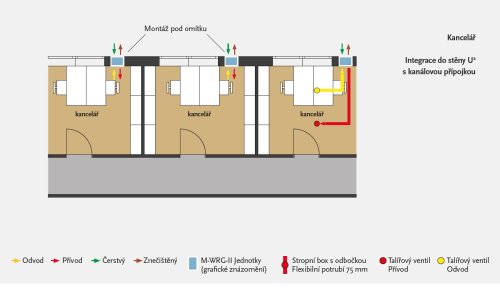 Rekuperační jednotky M-WRG-II jsou certifkované pro pasivní domy. Jsou kompromisem mezi decentrálním a centrálním systémem řízeného větrání. Řešení pro jednotlivé místnosti nebo vícero místností. Jsou tiché, vlastní hluková hladina od LpA,10m2 = 8,4 dB(A). Akustická izolace Dn,e,w až 70 dB(A), třída filtrace F7/ePM1 60% ve standardním provedení pro venkovní vzduch.