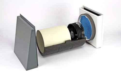 Velkou výhodou je jednoduchá montáž jednotky do obvodového zdiva. Celý systém je uložený v potrubí ve speciálním materiálu, který tlumí vibrace. Větrání je velmi tiché.